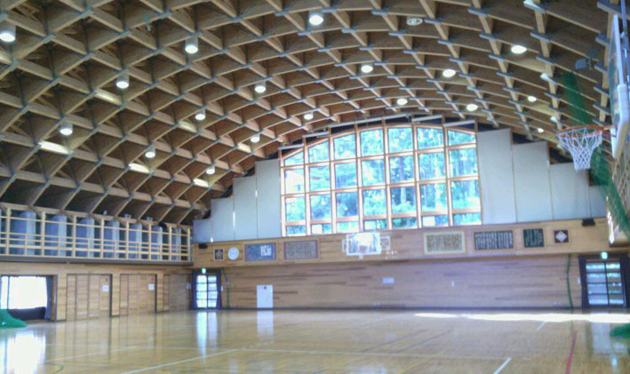 1年半の工期をかけた平屋建て(構造は鉄筋コンクリート造り)の体育館アーチ状の建物である。