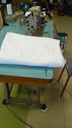帆布生地で色も真っ白なので扱いに注意をはらいながらの縫製です。