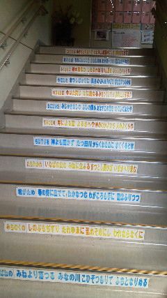 階段の一段、一段に百人一首が記されています。20120413-6.jpg