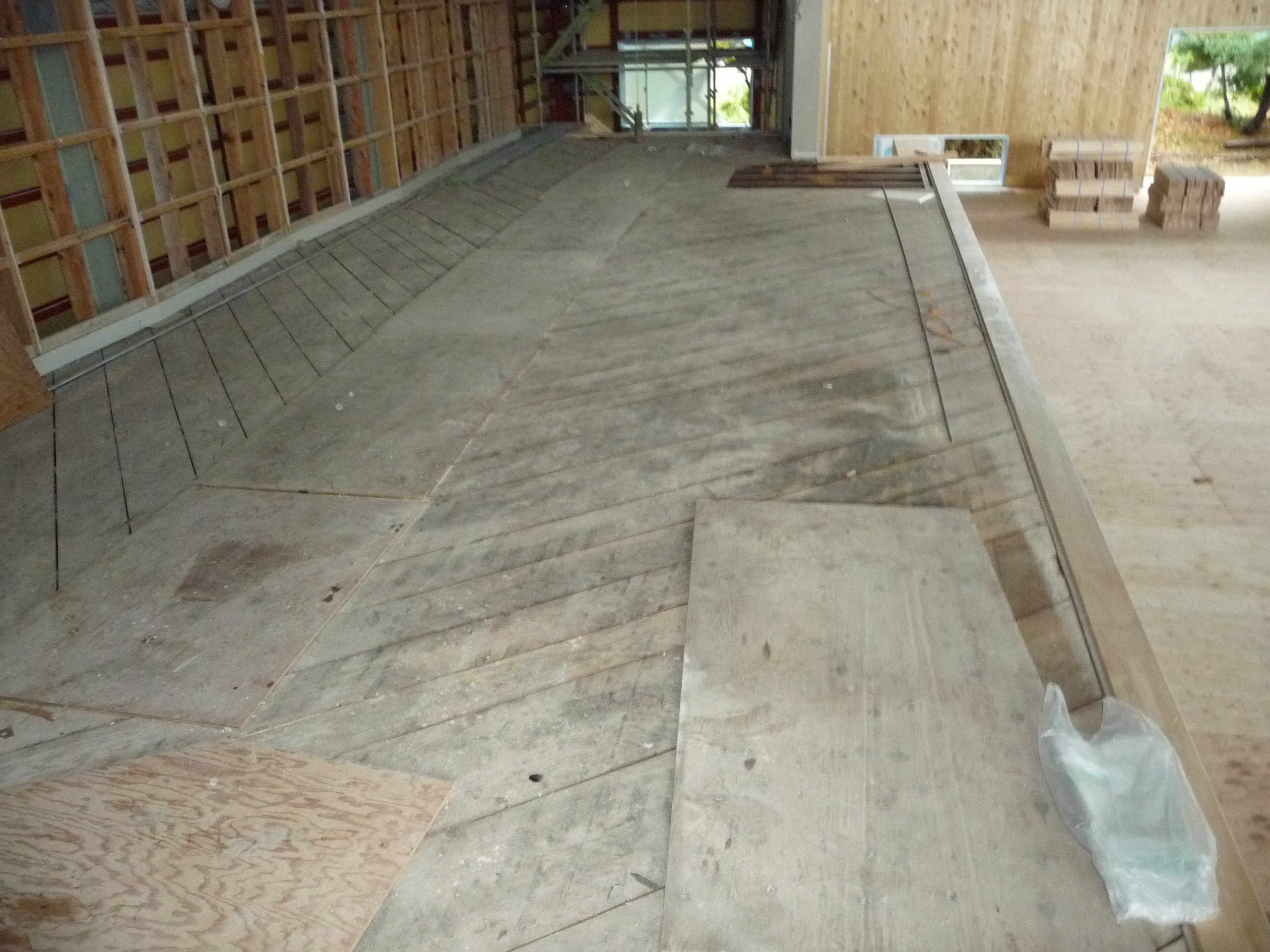 舞台床の表面を見ると板を1枚剥がしてあり一番下は、斜めの板になっておりました。