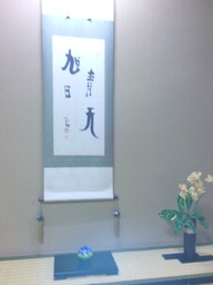掛軸は、「旭日青天」 良く見れば八田興一とあります。驚きました!(^^)!