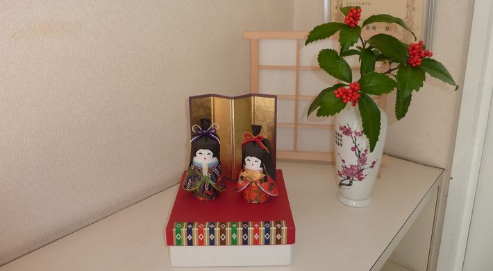 会社の玄関に今年も紙製のお雛様を飾りました。