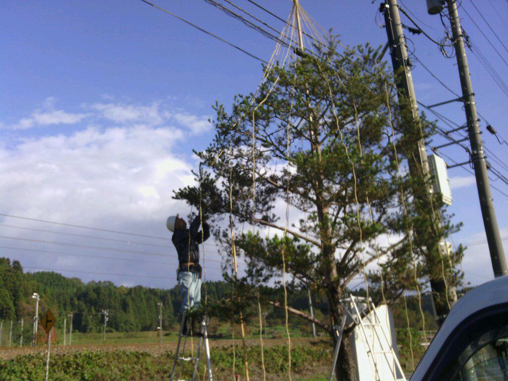近くに道の駅 倶利伽羅があり、雪吊り作業中です。