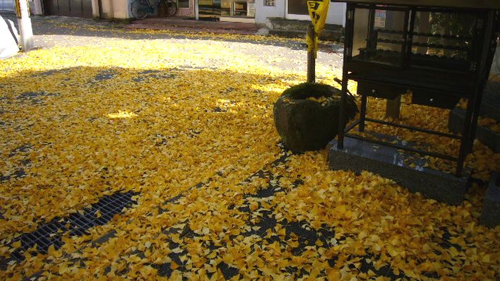 イチョウの葉が落ちて境内は黄色いカーペットを敷いたようになっており、通りがかった人も私と同じようにカメラに納めていました。