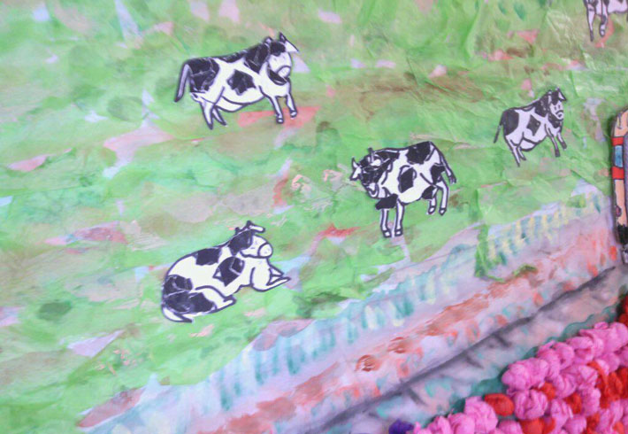 毎回利用者さんと職員の合作だそうですがビックリするほど出来が良く、又、布、紙、毛糸等を使用し