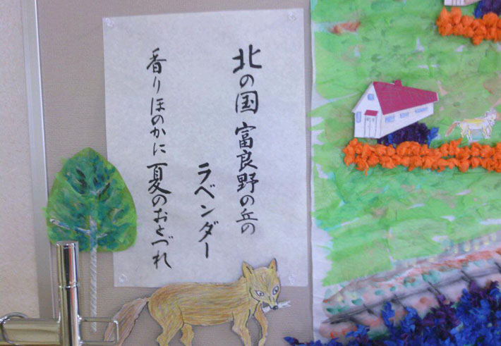 入口の掲示板には季節ごとの作品を掲示しており、見るのが楽しみでもある。