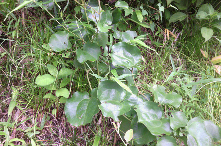 人が入らぬ所かサンキライの葉もひときわ大きく、色が鮮やかである。