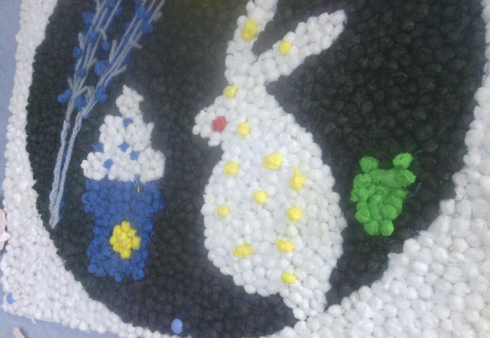 紙を丸めて団子状にし貼ってある。