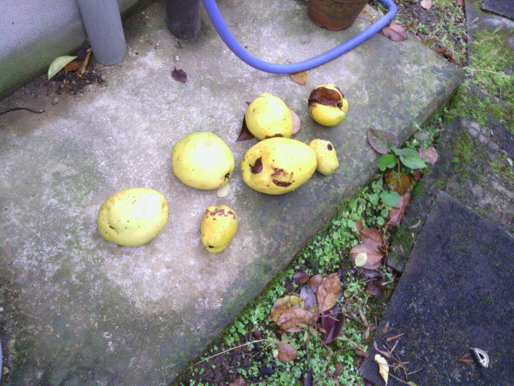 毎年実がなるカリンの木だが実が大きくなりすぎてカリン酒にも出来ず困っている。