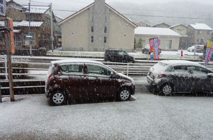 午後3時頃から綿雪が降り出し、あっと言う間に真っ白です。厳しい冬の始まりです。