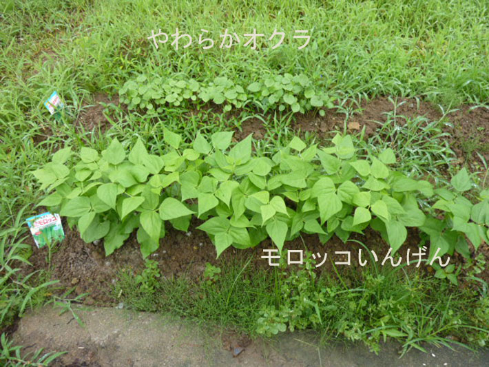 モロッコいんげん、やわらかオクラ、モロヘイヤの3種類で、肥料をやらねばと思っていますが