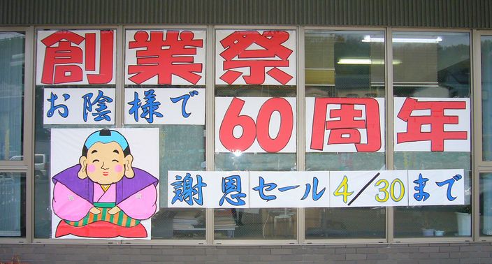 只今、創業60周年を記念して謝恩セールを開催中です。