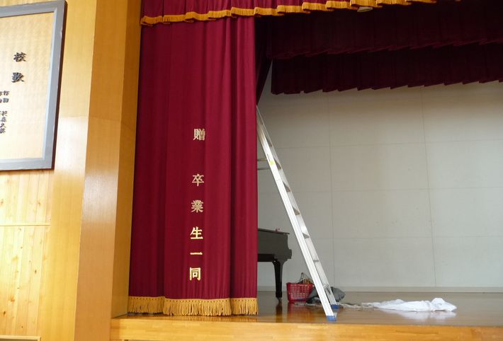 10日ほど前にお預かりした時の袖幕。『卒業生一同』の文字がはがれて見にくくなっています。