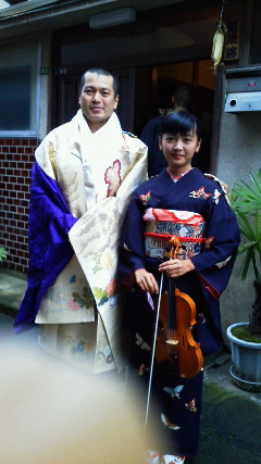 お許しをいただき、お父様とバイオリン奏者の娘さんの写真を一枚。