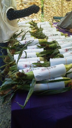 今年用の新しいトウモロコシが並びます。