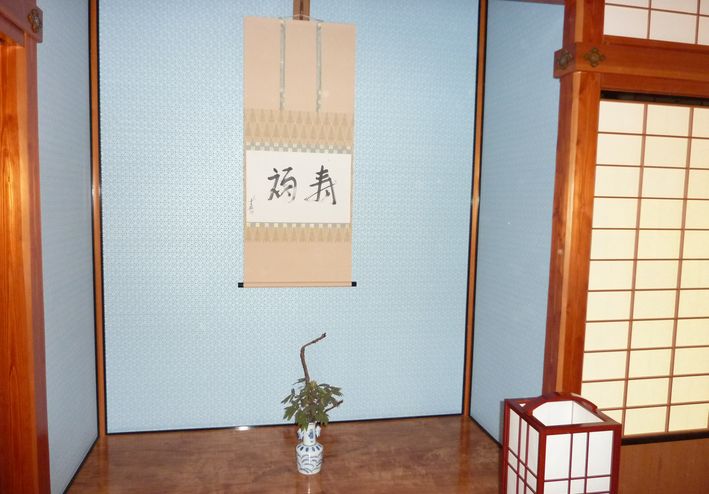 奥10帖(向かって右)床の間には掛軸は「福寿」