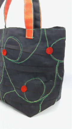バッグに付いている赤い丸はフェルトを使い飾り付けしました。