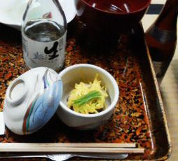 加賀野菜の一つ金時草をうどんにした物、奥様お手製のかぶら寿し、本当においしい料理でした。