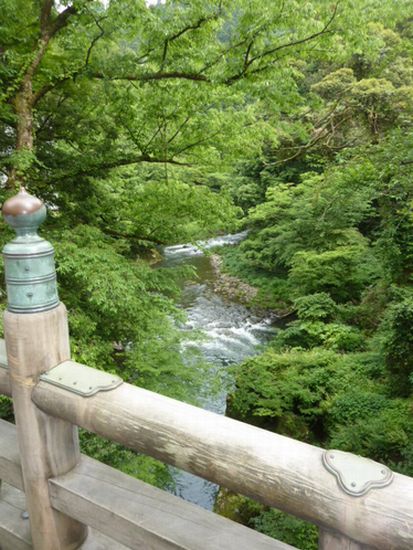 こおろぎ橋と渓谷の深い緑が美しい所でもあります。