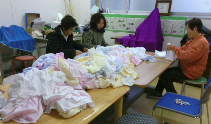 例年2月は近くの医王病院で「おしぼりたたみ・衣類の整理」等のお手伝いをしており