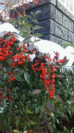 赤み実の南天にも雪が・・・!