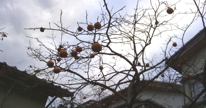 これは富有柿ですが葉が全部落ちてしまい今は実が少々残っています。