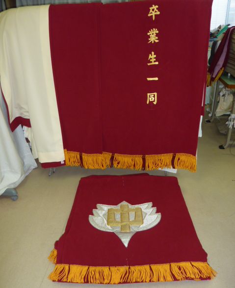 2Fの作業場では、一文字と袖幕が仕上がり、吊り込みを待つばかりです。