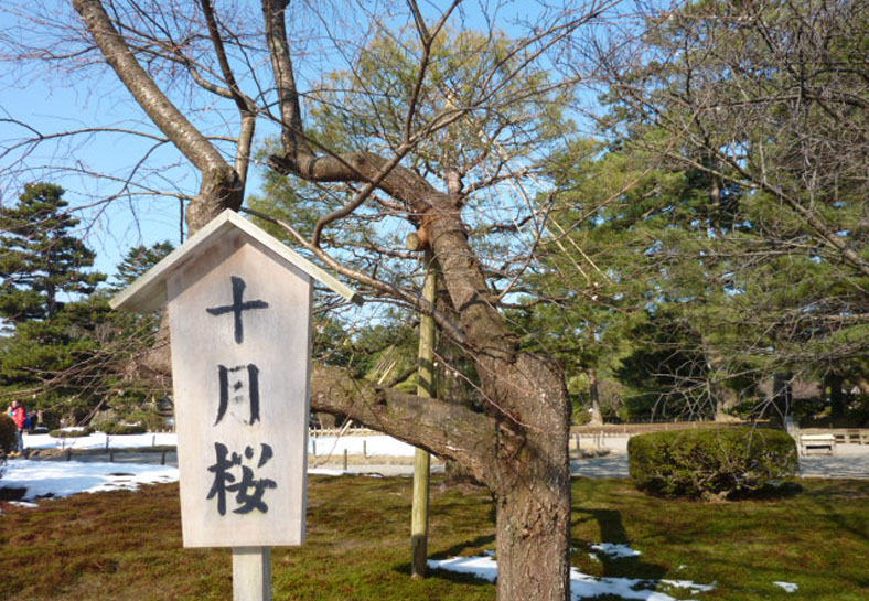 天候に恵まれ、美しい逆さ雪吊りを見学し、十月桜を見て心は本当に癒されました。