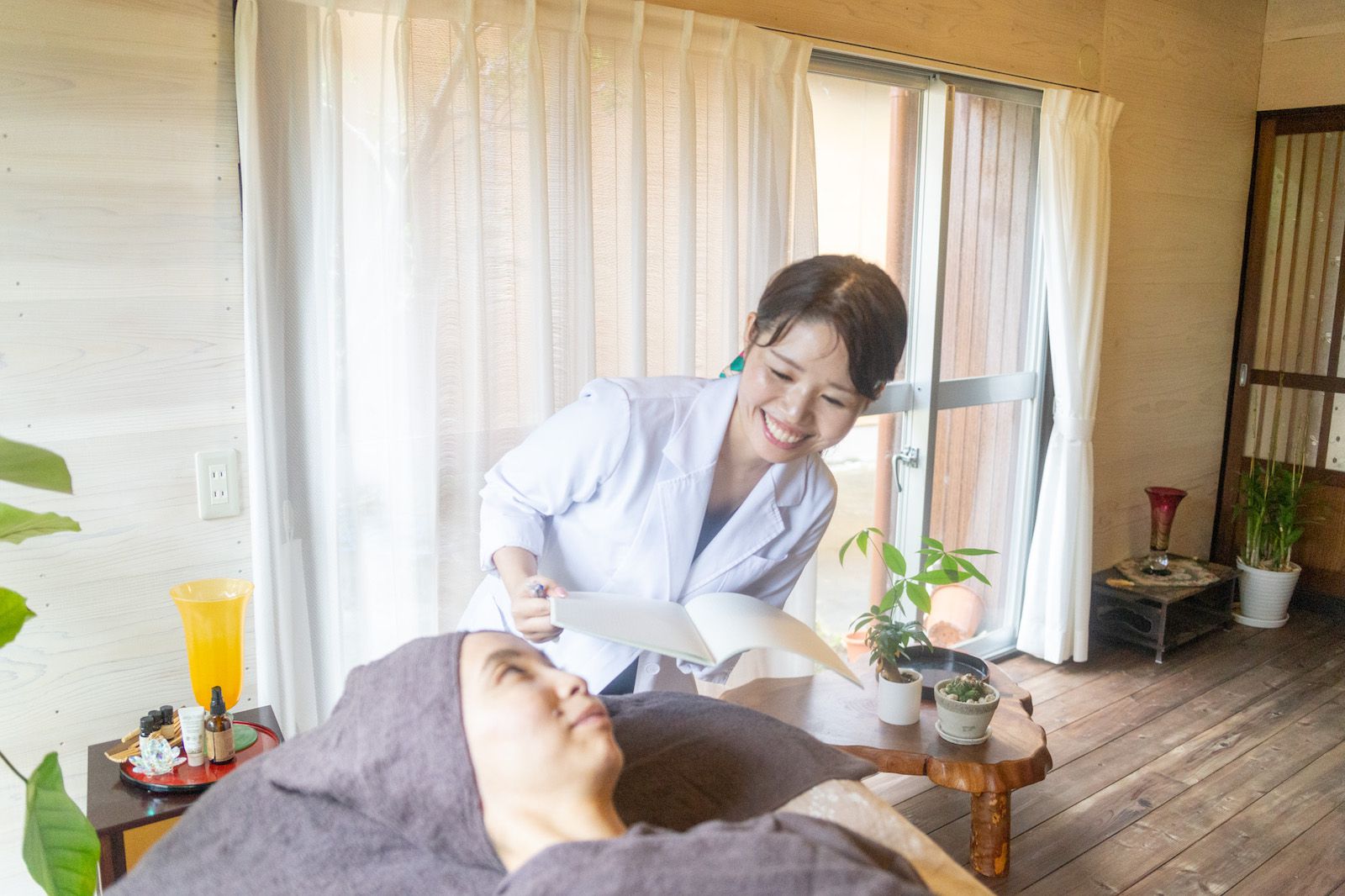 艶のあるもっりちりした肌になってもらうため、オールハンドの施術をおこなっています。笑うことも綺麗になる秘訣の一つ。お肌も心も綺麗になって帰っていただきたいです。