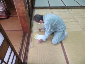 お寺さんで、本堂の畳表替をさせて頂いております。