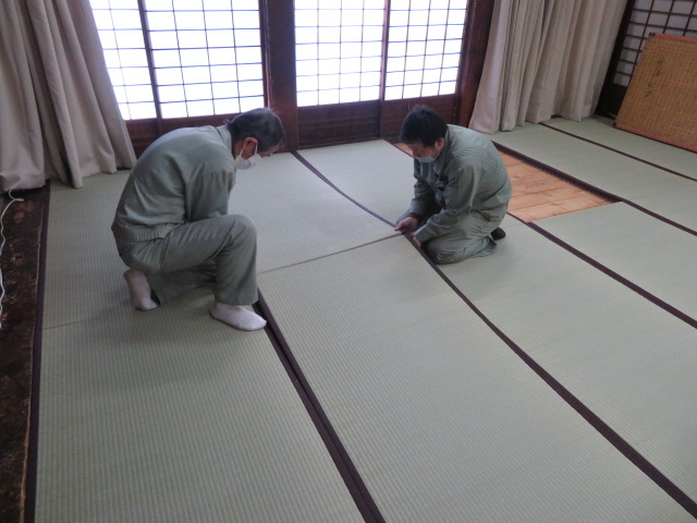 右側の畳の段差や隙間を調整しながら納品後 清掃して次は真ん中の畳引上げですが、