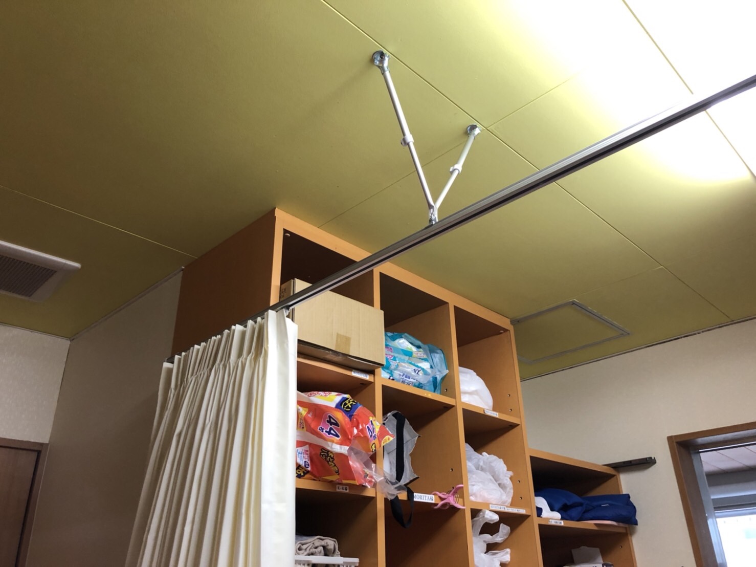カーテンレールは固定されず端のレールと棚に仮置きしカーテンが吊ってありました。