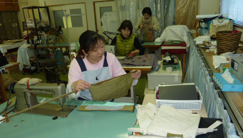 2階の作業所では現在、新作ヘリバッグ製作中です。