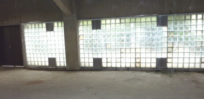 壁面がガラスブロックでかこまれており、万が一割れた場合には破片が飛び散り危険です。